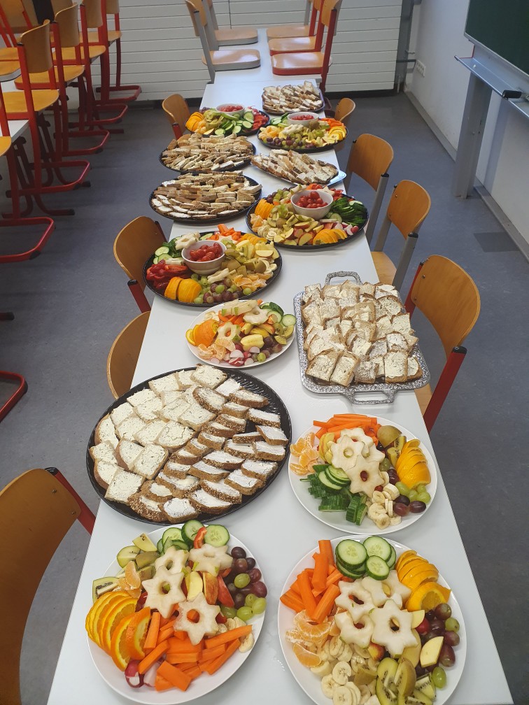 Gesundes Pausenfrühstück am 05.12.2025, organisiert durch die Mütter der Klasse 4 – Herzlichen Dank!