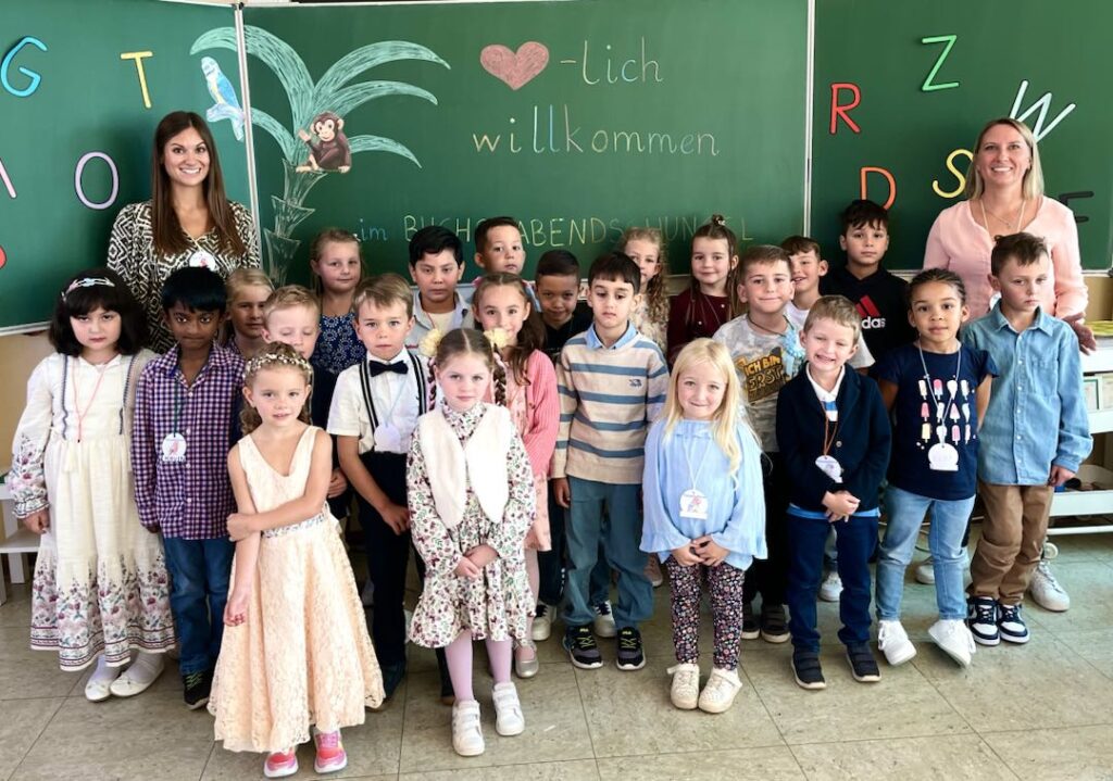 Wir heißen unser erste Klasse im Schuljahr 25-26 mit ihrer Klassenlehrerin Frau Schroff und Frau Kölble, die unsere Inklusionskinder begleitet, herzlich an unserer Grundschule willkommen!